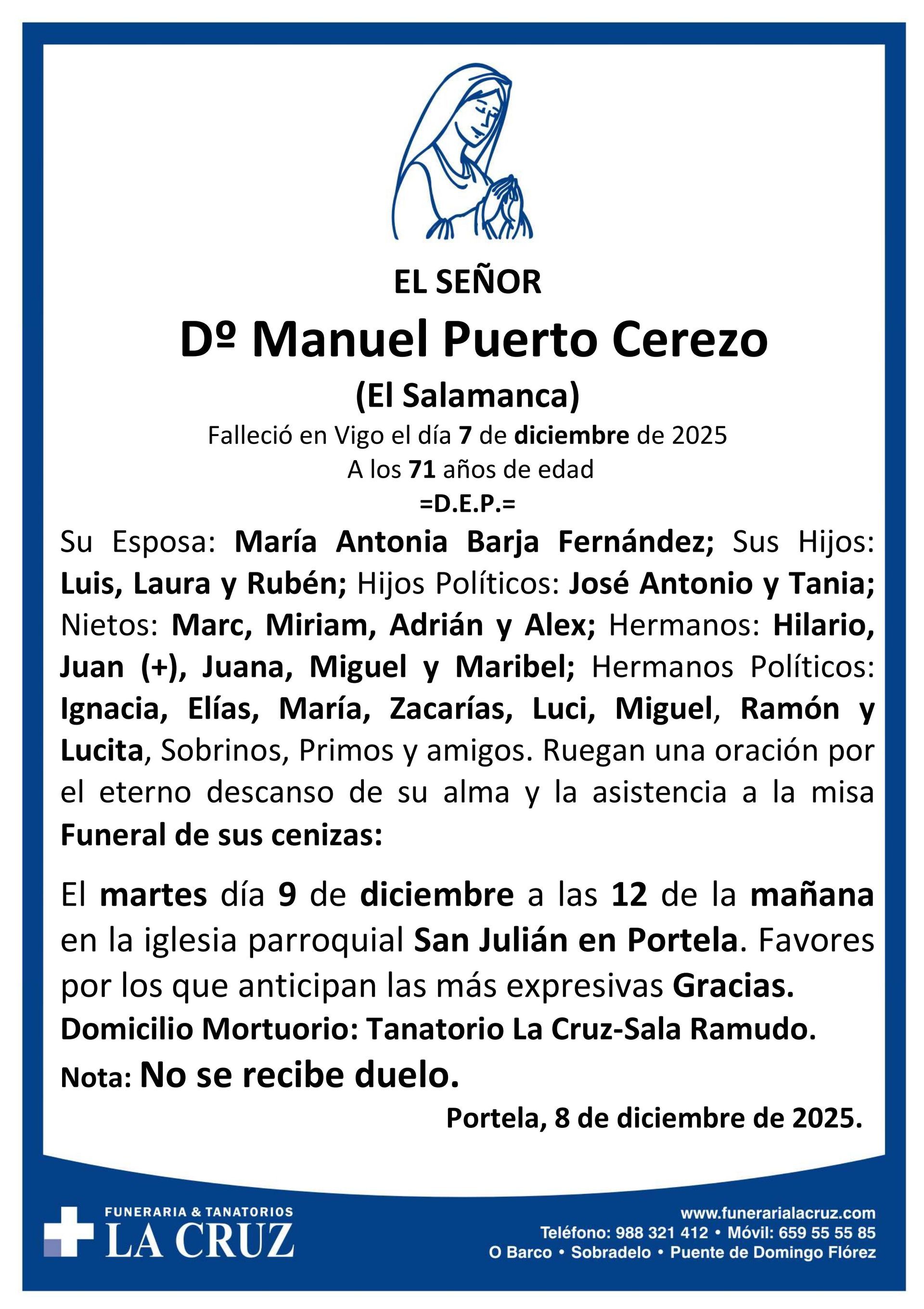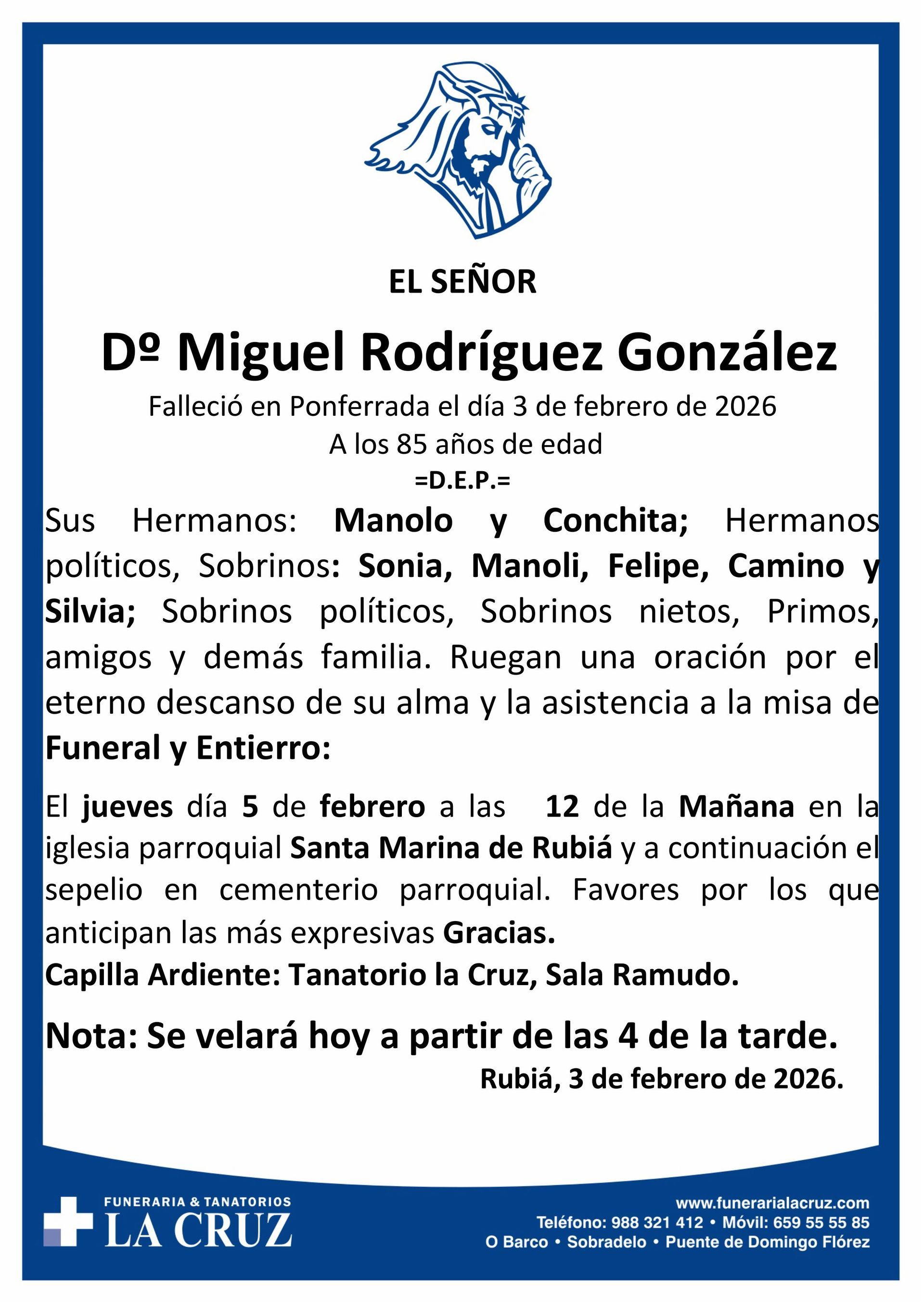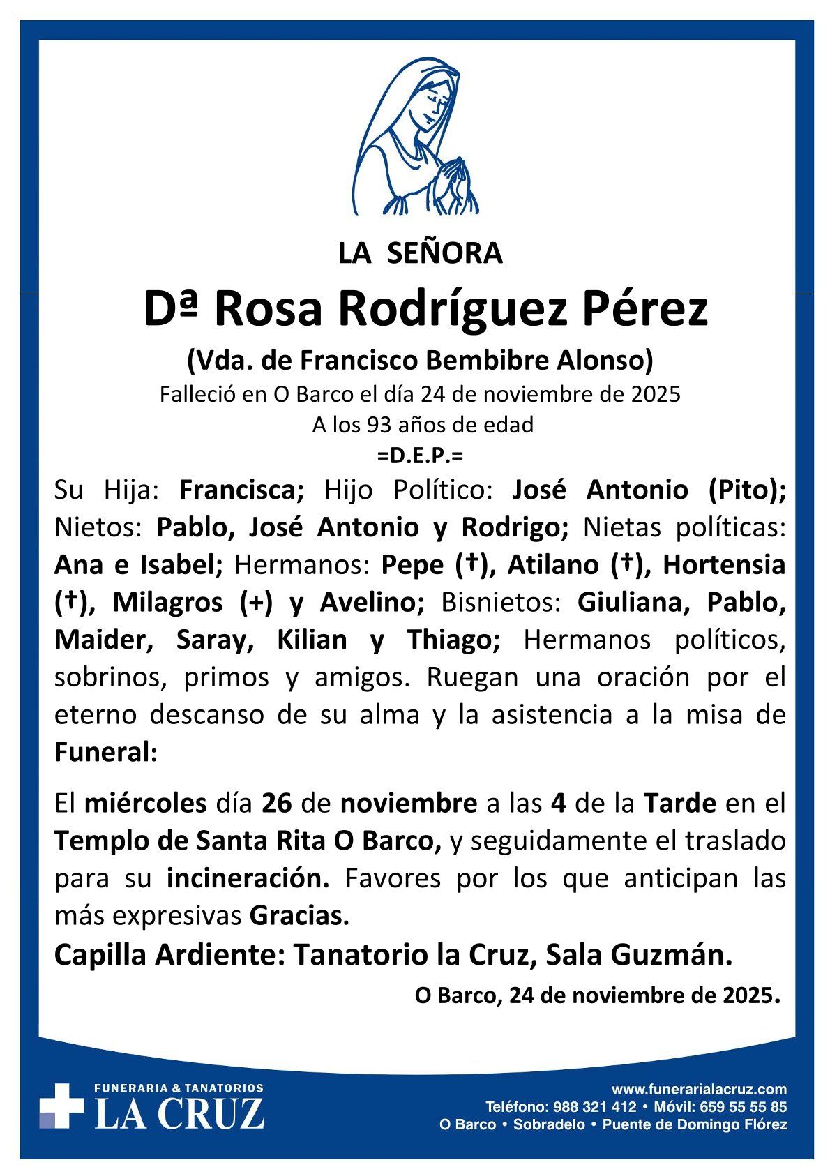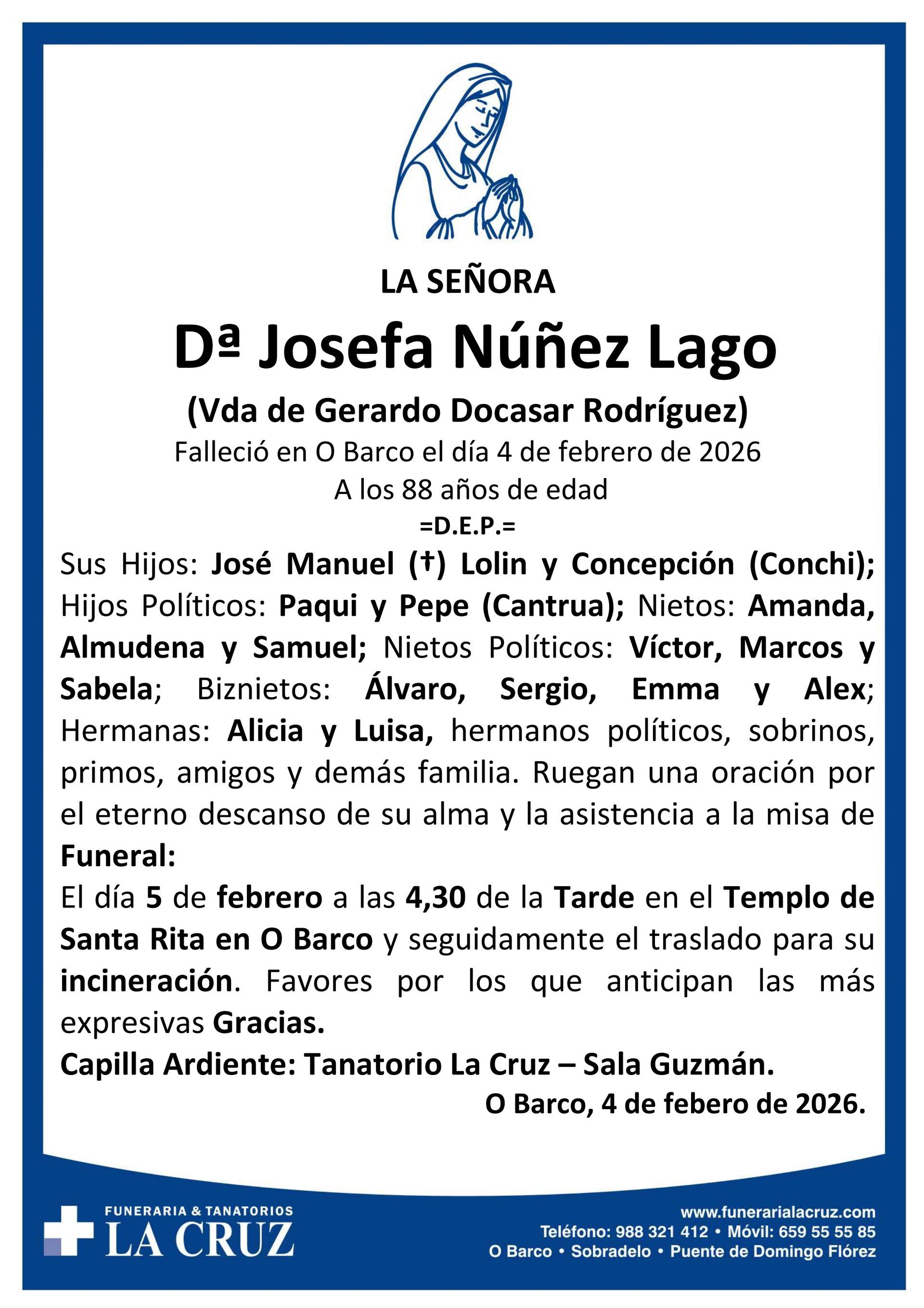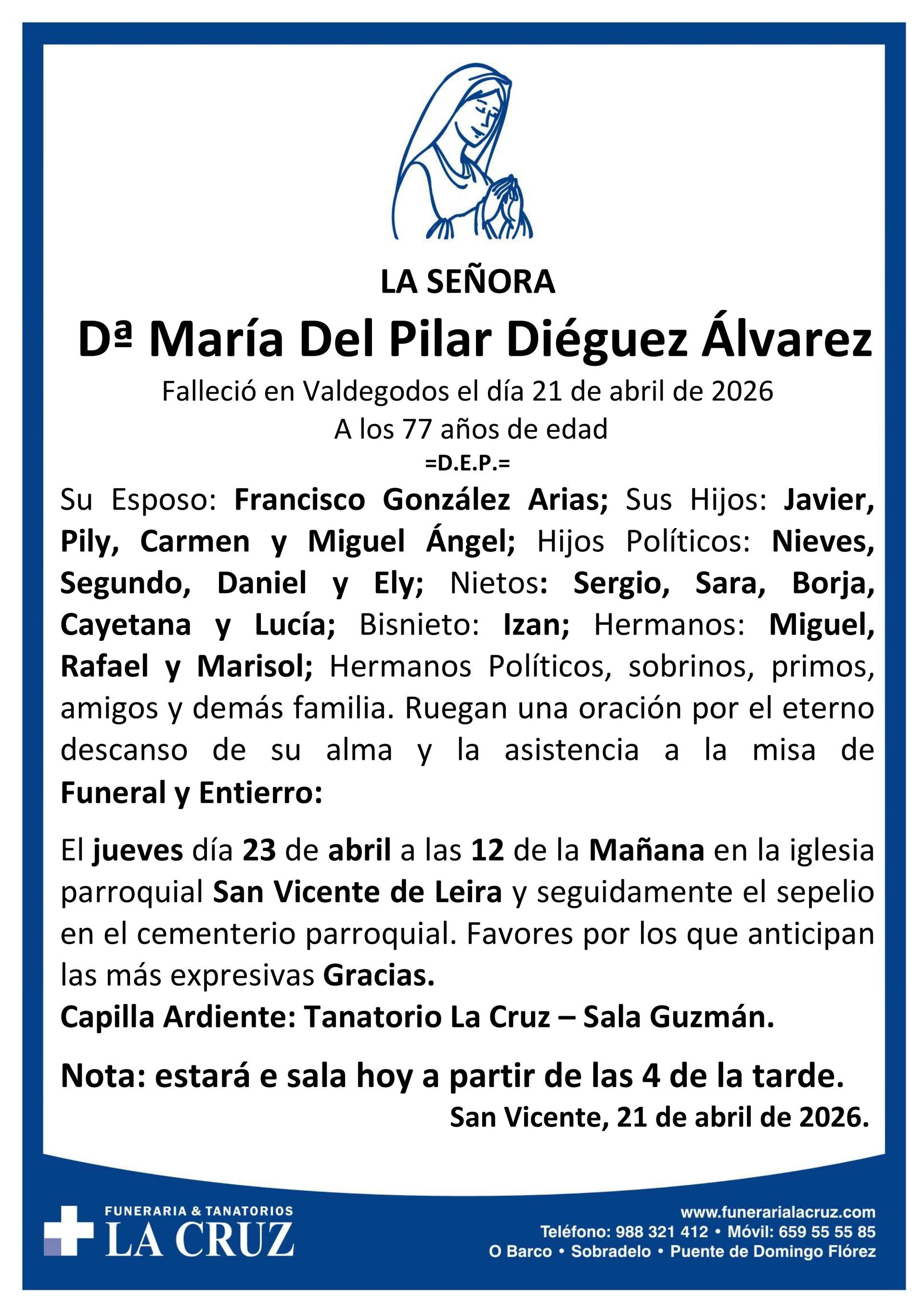 El personal de Funeraria La Cruz en O Barco de Valdeorras, pone a su disposición la información de los oficios de hoy.
